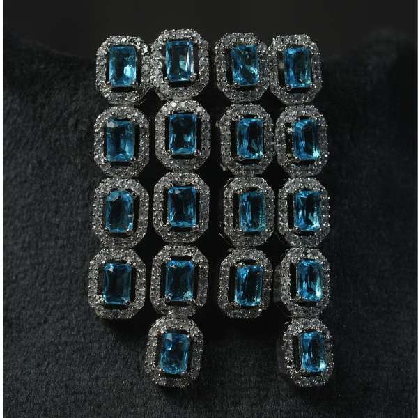 Elevate your festive and bridal looks with this elegant AD choker necklace set featuring sparkling blue stones and a premium silver finish. Designed for weddings, parties, and special occasions.