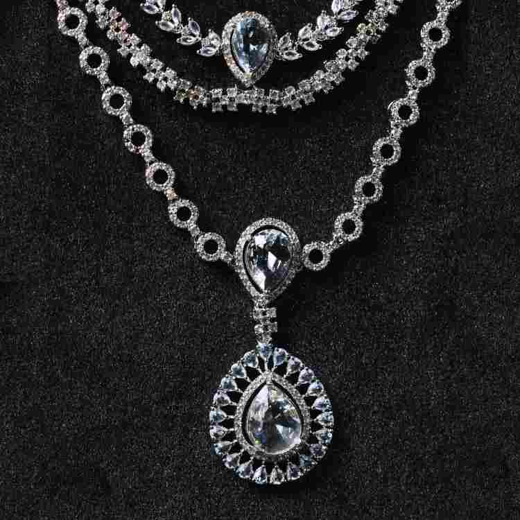 This stunning ad jewellery necklace features a brilliant teardrop-shaped pendant surrounded by sparkling American diamonds for a luxurious finish. Crafted with a silver-plated alloy base, it offers the perfect blend of style, comfort, and durability. Ideal for Indian weddings, parties, festivals, and gifting, this necklace enhances both traditional and western outfits effortlessly. The elegant design creates a premium look without the heavy cost of real diamonds, making it a smart choice for modern women. Whether you’re dressing up for a special occasion or adding shine to your everyday wardrobe, this necklace delivers timeless beauty and confidence.