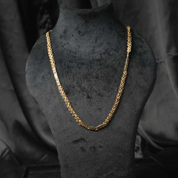 This Gold figaro chain features the iconic alternating link pattern that delivers a strong yet refined look. Crafted with a durable gold-plated finish, it offers long-lasting shine and comfortable wear throughout the day. The secure clasp ensures confidence in daily use, while the versatile design pairs effortlessly with casual outfits, formal attire, or traditional Indian wear. Ideal for men who prefer subtle luxury, this chain works perfectly as a standalone statement or layered with pendants. A reliable choice for gifting, celebrations, or personal style upgrades.