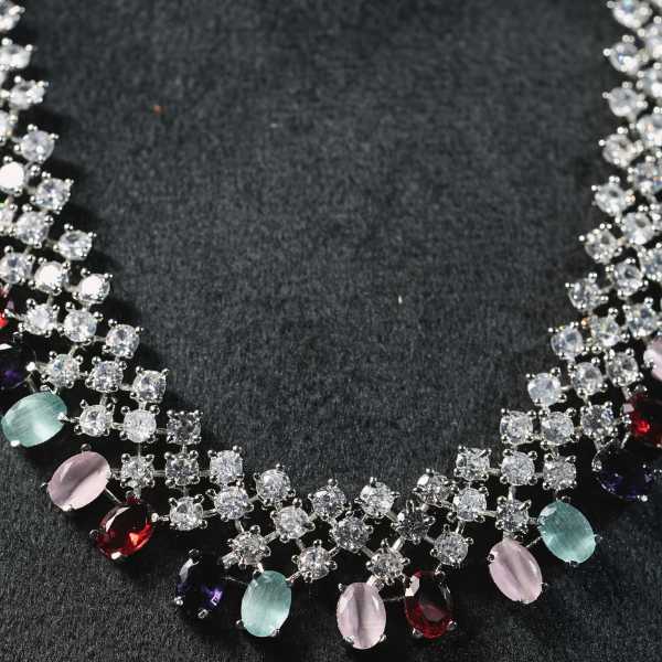 Turn heads with this stunning multi color statement necklaces set, crafted with a silver-finish alloy base and beautifully arranged crystals and stones. The rich mix of colours adds depth and sparkle, making it a perfect match for ethnic wear, fusion outfits, and evening ensembles. Designed to be lightweight yet impactful, this necklace offers comfort along with a bold fashion statement. The matching earrings complete the look, making it ideal for weddings, festivals, parties, and special celebrations. A must-have jewellery piece for women who love expressive, elegant accessories with timeless appeal.