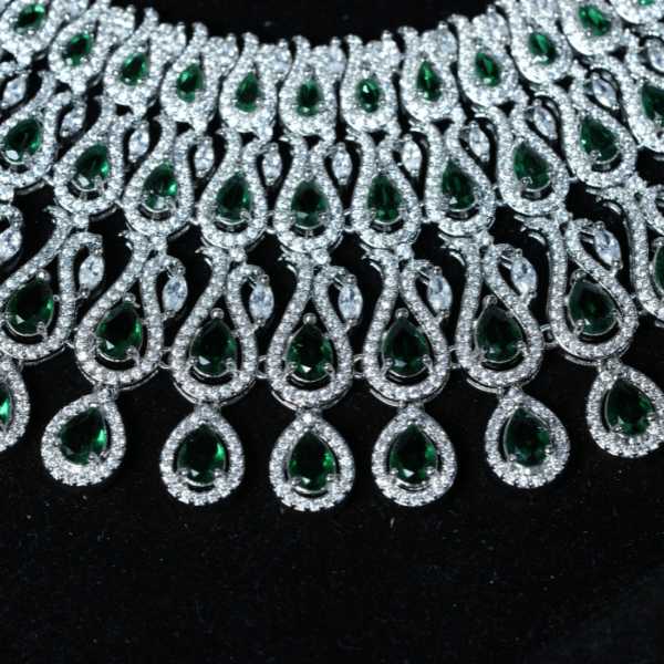 The Teardrop Layered Bridal Necklace Set is crafted for women who love statement jewellery with refined elegance. Featuring a beautifully layered teardrop design, this set creates depth, sparkle, and graceful flow around the neckline. The premium silver finish offers a polished, high-end appearance that complements lehengas, sarees, and gowns. Lightweight yet impactful, it ensures comfort during long celebrations while delivering maximum visual appeal. Ideal for weddings, receptions, engagements, and festive events, this necklace set brings together tradition, glamour, and versatility in one timeless design.